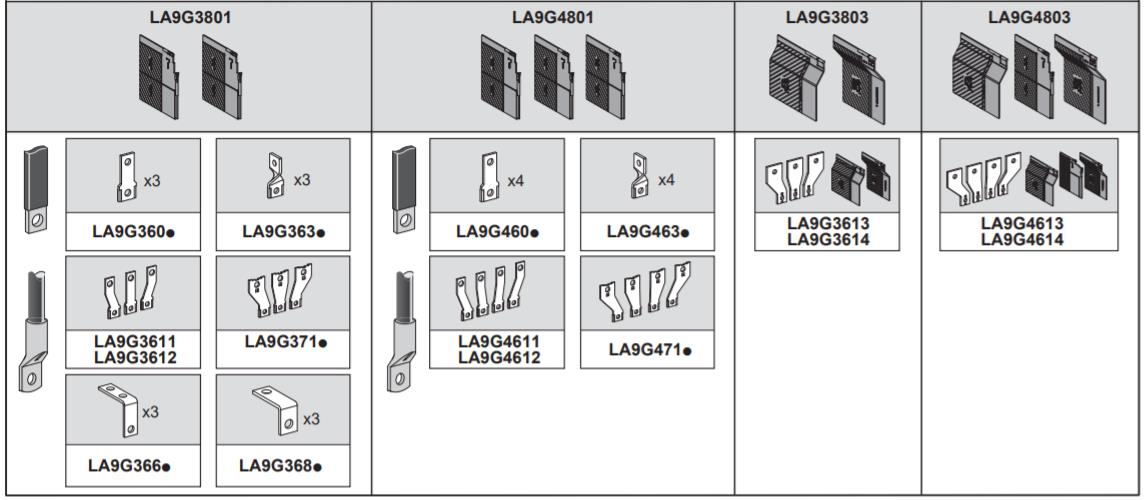 LC1G 接觸器(qì)的相間隔板(bǎn)兼容的電源連接附件如下圖所示: