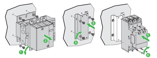 若(ruò)要與(yǔ)接觸器主電源連接端子對齊,需要(yào)選配安裝底座(zuò),安裝步驟如下: